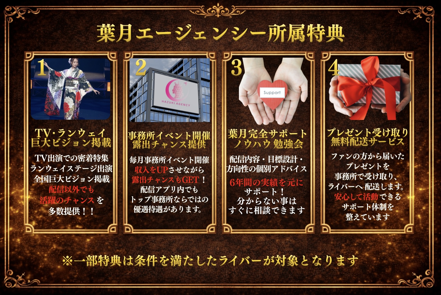 メディア露出、巨大ビジョン掲載、有名ランウェイ出演、雑誌掲載、PRモデルなどの外部案件への参加機会提供